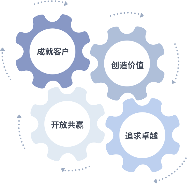 成就客户是一切决策的出发点,创造价值是衡量所有工作的标准,追求卓越是凯发k8做事做人的态度,开放共赢是凯发k8的格局也是最终的结果。价值观的齿轮环环相扣,推动着组织里的每个人不断向前。